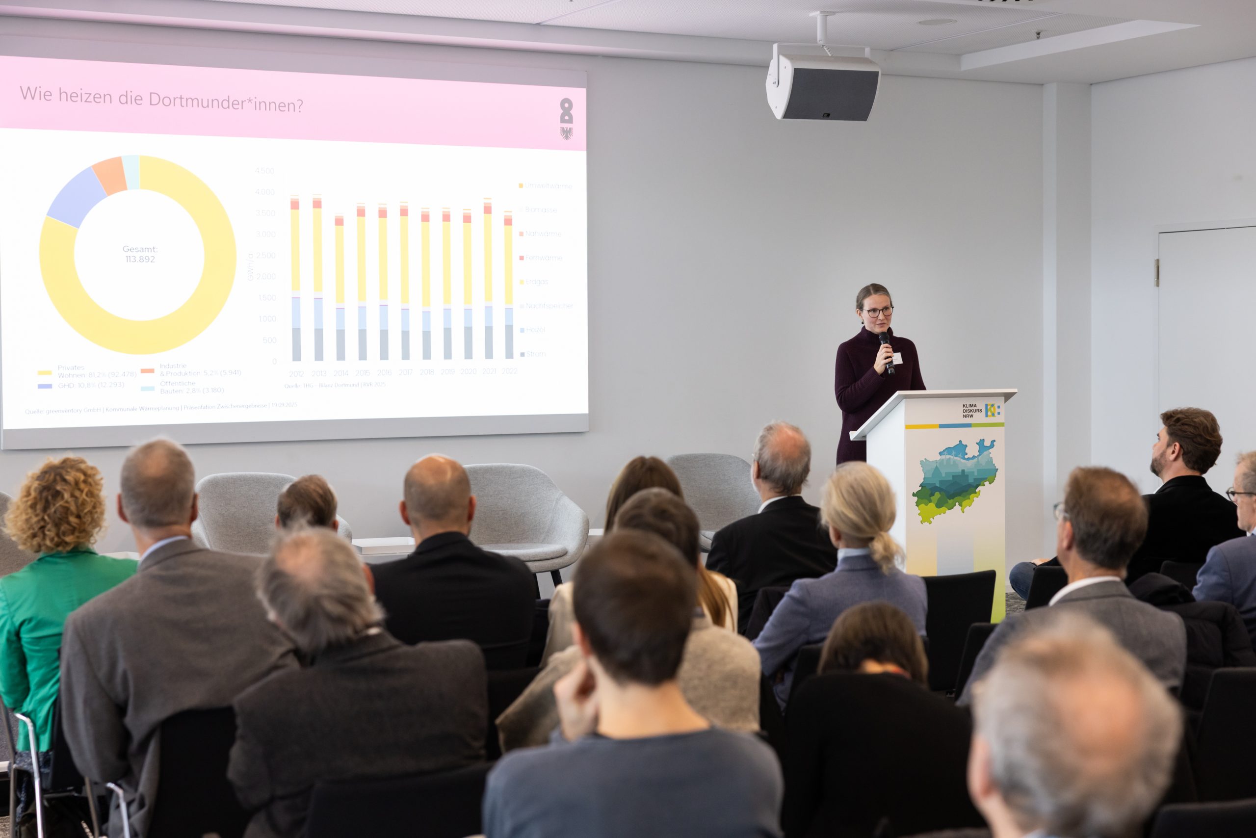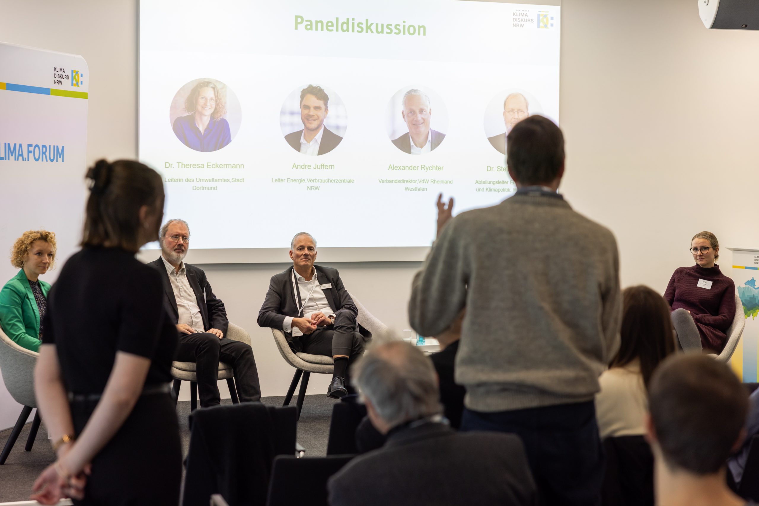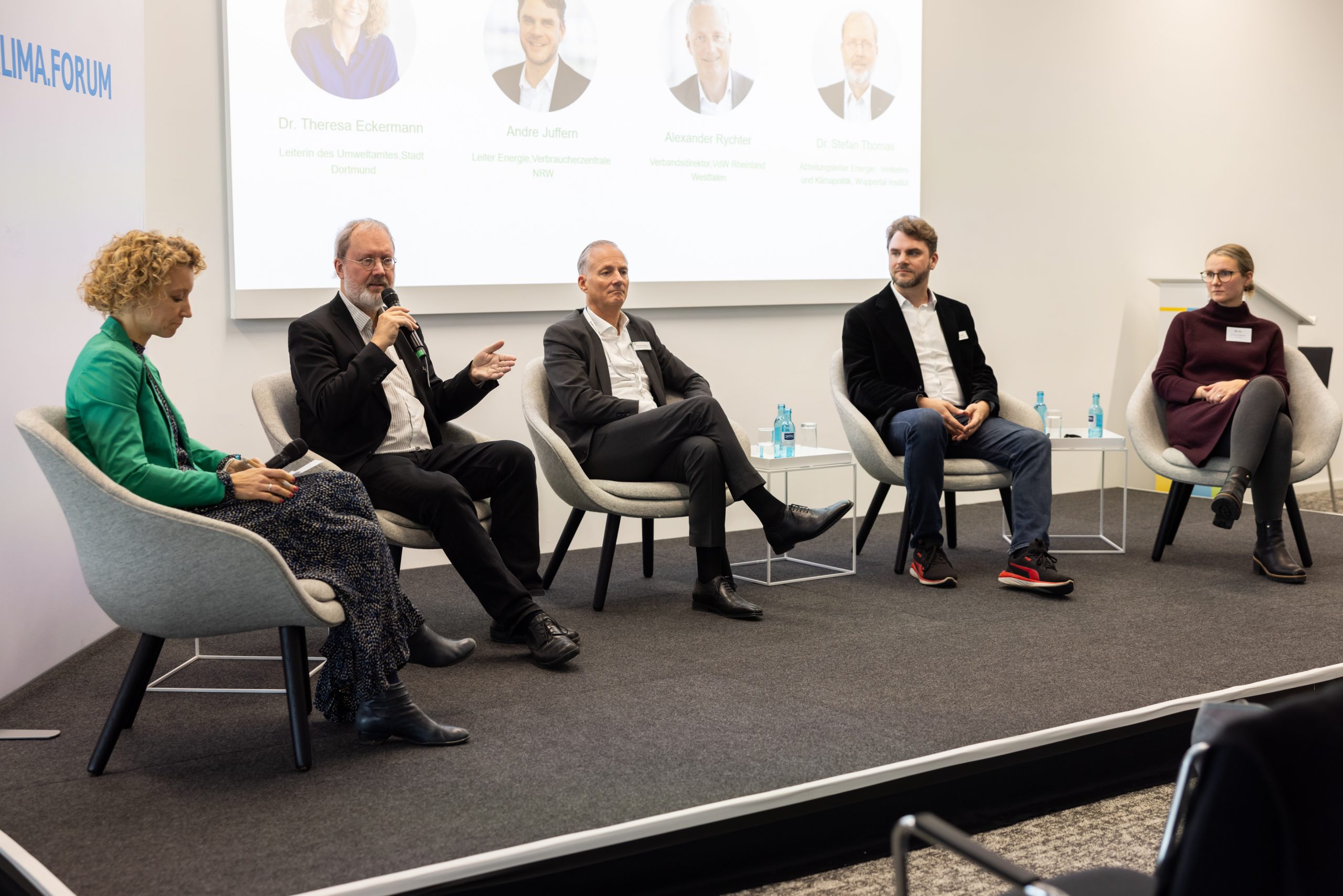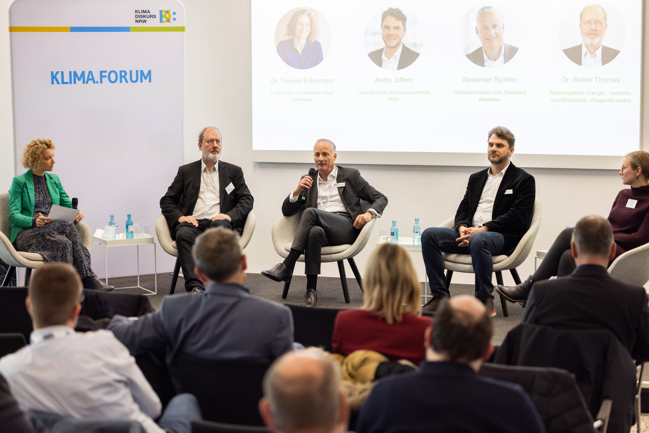 Unter anderem dabei waren Dr. Theresa Eckermann (Leiterin des Umweltamtes, Stadt Dortmund), Dr. Stefan Thomas (Abteilungsleiter Energie-, Verkehrs- und Klimapolitik, Wuppertal Institut), Alexander Rychter (Vorstand, Verbandsdirektor, VdW Rheinland-Westfalen) und André Juffern (Bereichsleiter Energie, Verbraucherzentrale NRW).