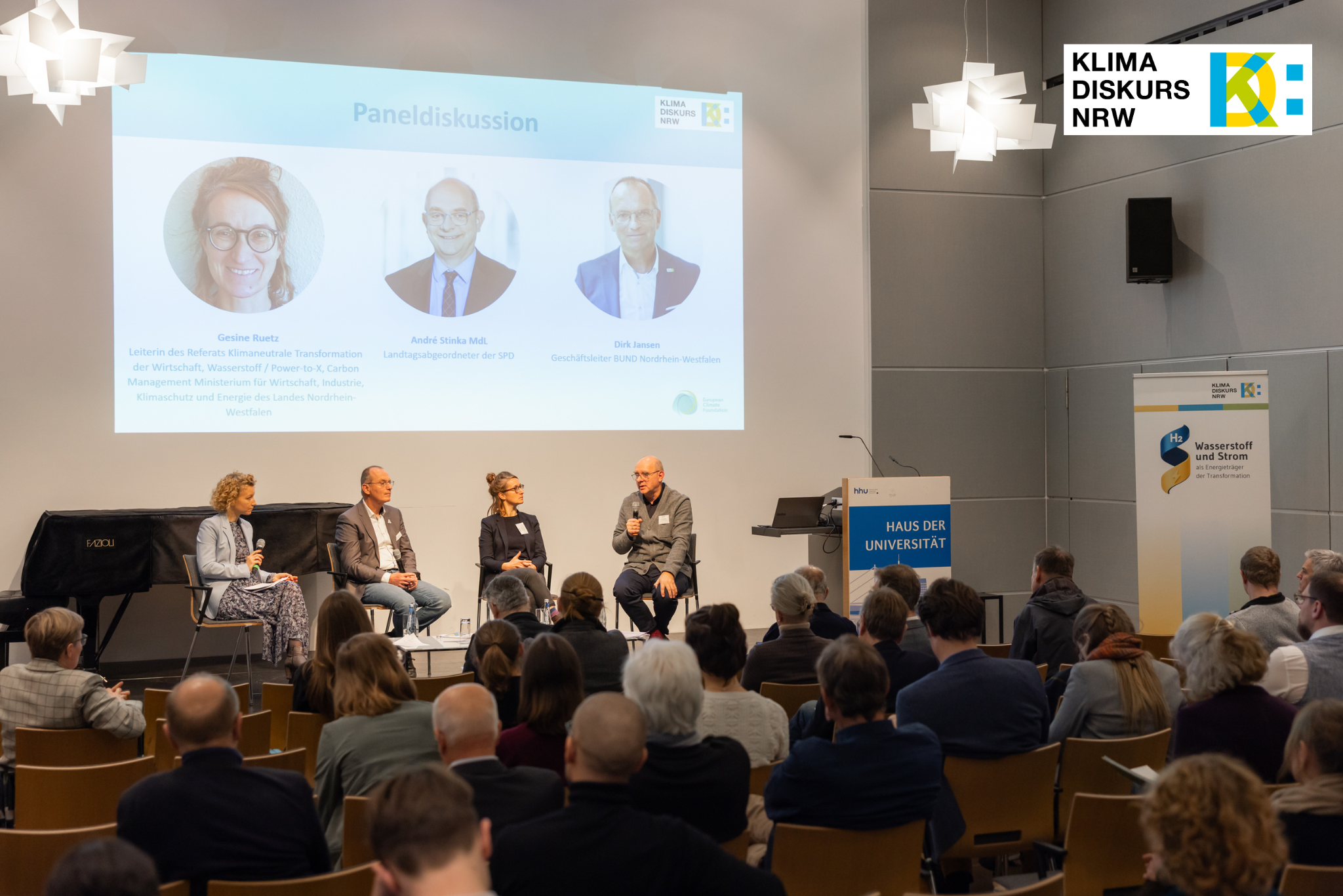 Unter anderem dabei waren Gesine Ruetz (Leiterin des Referats Klimaneutrale Transformation der Wirtschaft, Wasserstoff / Power-to-X, Carbon Management, Ministerium für Wirtschaft, Industrie, Klimaschutz und Energie des Landes Nordrhein-Westfalen), André Stinka MdL (Landtagsabgeordneter der SPD) und Dirk Jansen (Geschäftsleiter BUND Nordrhein-Westfalen).
