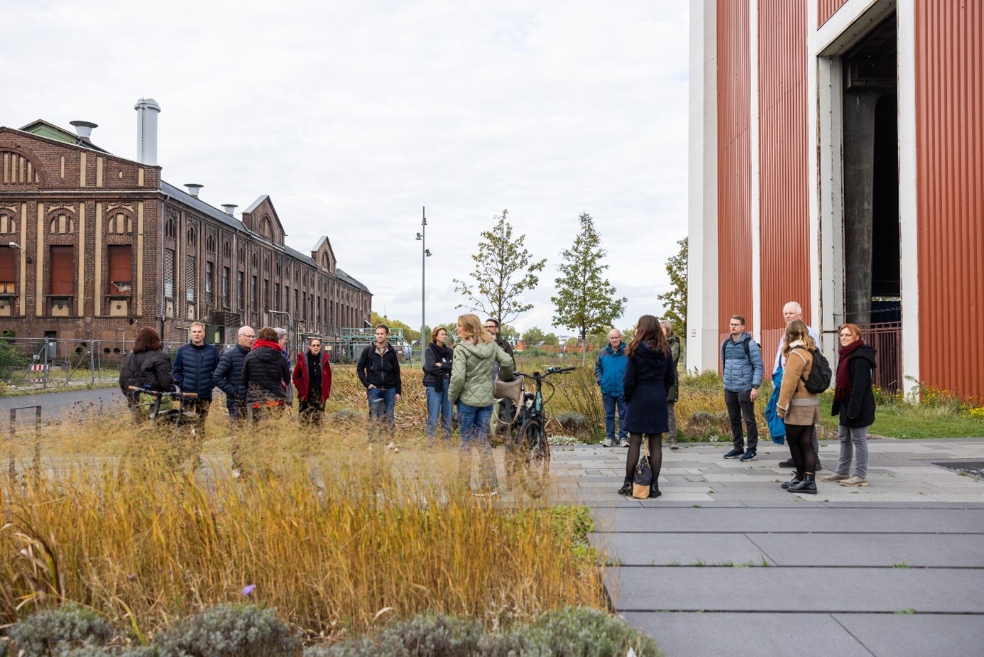 In Kamp-Lintfort führte der Rundgang durch den “Zechenpark”, die Innenstadt sowie zu verschiedenen Schulhöfen. Die Teilnehmenden erkannten dort, wie Begrünung, Entsiegelung oder Regenwasserrückhalt bereits zur Anpassung beitragen und wo die Stadt noch nachsteuern muss.